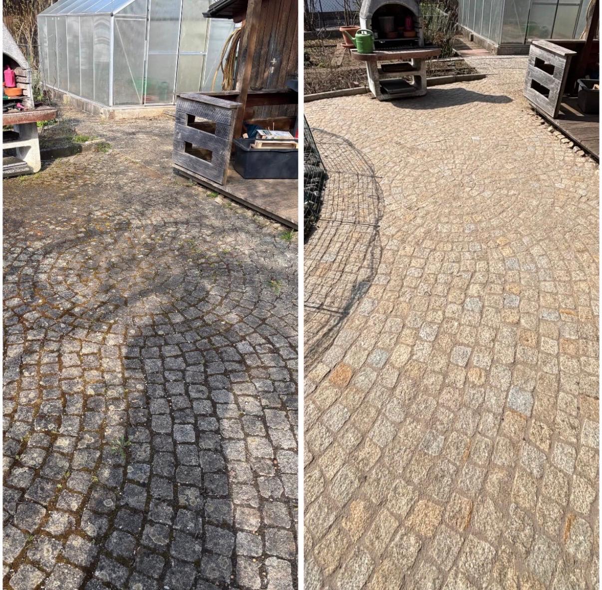 Porentiefe Reinigung von Hof, Einfahrt und Terrasse für maximalen Werterhalt.